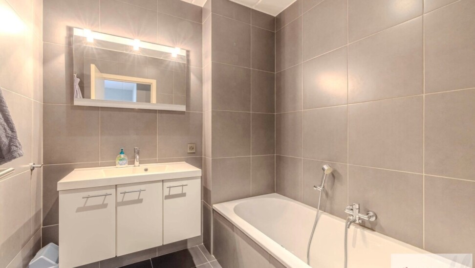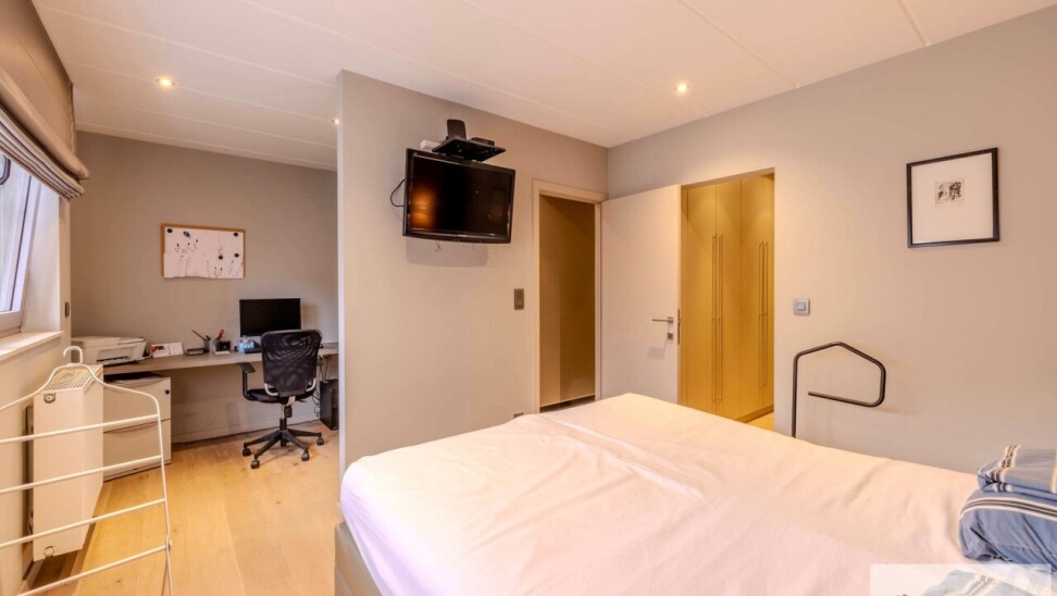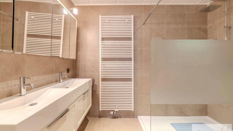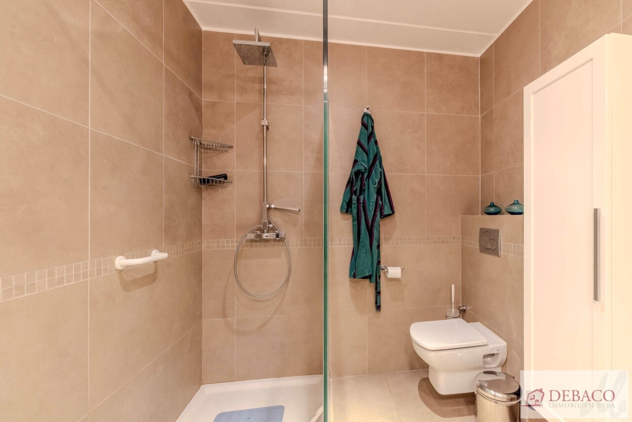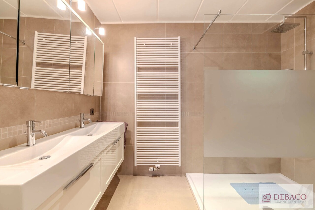 De eerste slaapkamer is voorzien van een tegelvloer en een badkamer die is uitgerust met een bad en lavabo. De tweede slaapkamer is voorzien van parketvloer met bureauruimte, een aparte dressing en een afzonderlijke badkamer met een inloopdouche, dubbele lavabo en een toilet aanwezig.