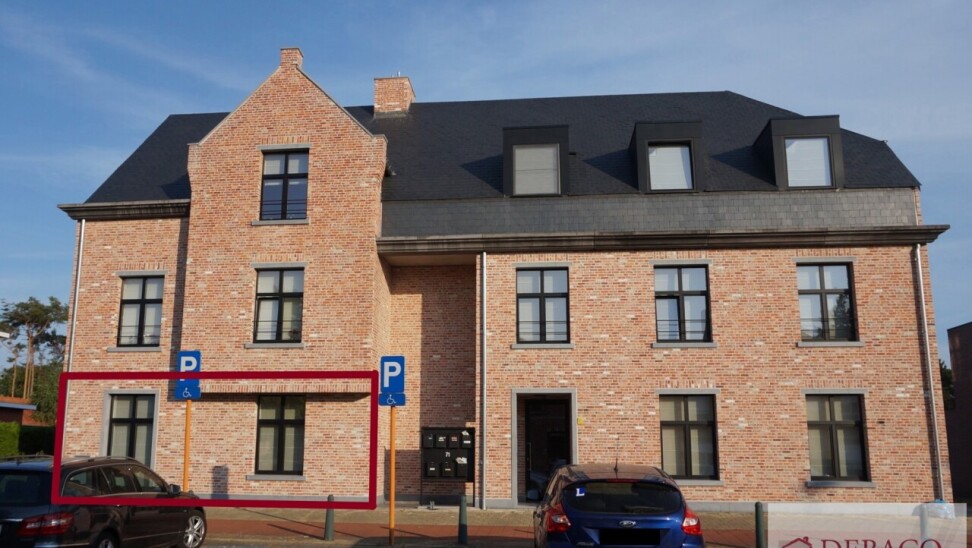Dit appartement bestaat uit een inkomhal, woonkamer, keuken, berging/wasplaats, gastentoilet, badkamer, twee slaapkamers, tuin en carport. Het geheel is voorzien van vloerverwarming en werd afgewerkt met de betere materialen.