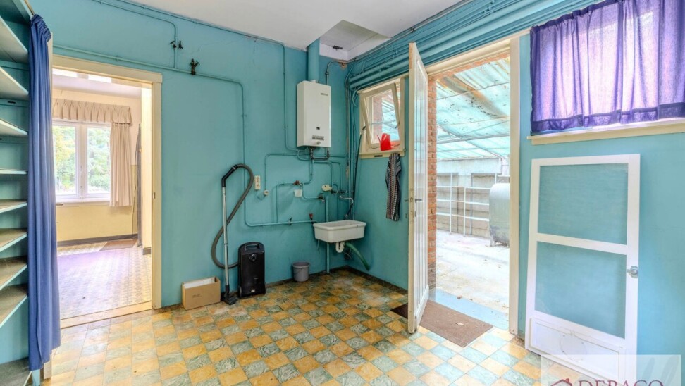 Binnenin word je verwelkomd in de inkomhal die toegang verleend tot de tweedelige leefruimte die in directe verbinding staat met de keuken. Vervolgens krijgt u vanuit de keuken toegang tot de kelder en nog een naastgelegen praktische berging. Verder bevinden zich op het gelijkvloers een toilet & garage. Achteraan ontdek je nog een grote polyvalente ruimte, die rechtstreeks toegankelijk is vanuit de tuin en die ideaal als werkplaats, hobbyruimte of atelier in te richten is.