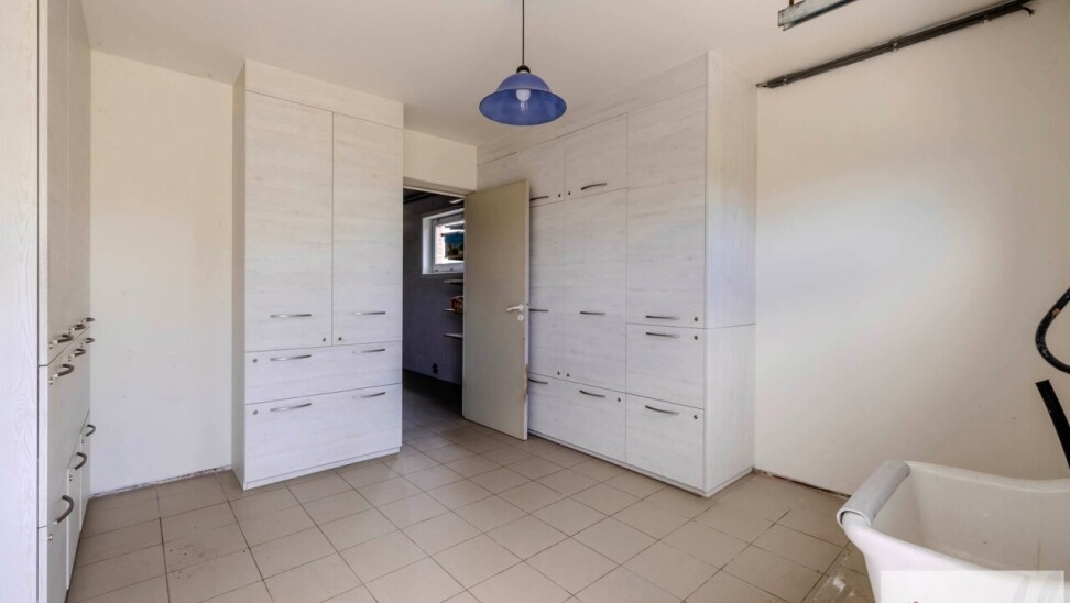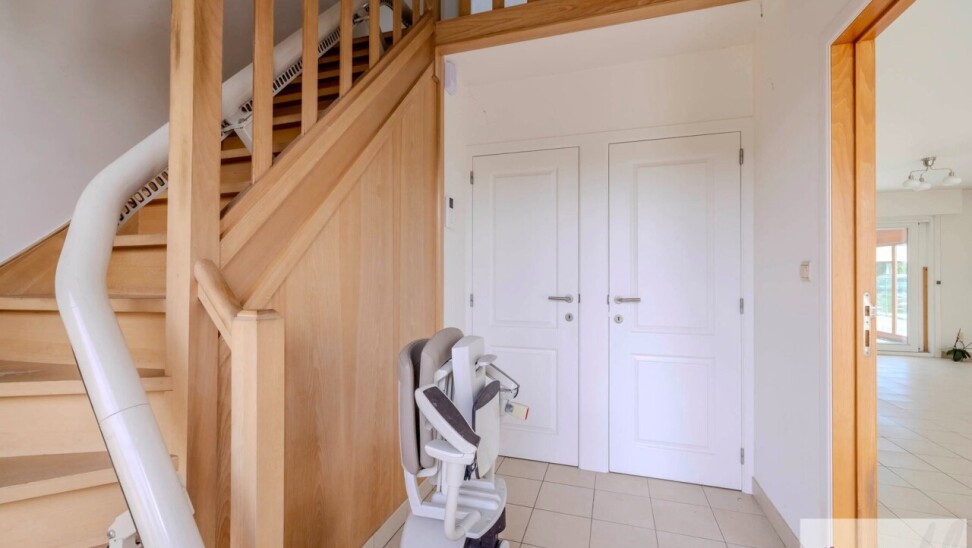 Binnenin wordt je verwelkomd in een mooie en ruime leefruimte die aansluiting biedt op de moderne en volledig ingerichte keuken. Vanuit de leefruimte krijgt u toegang tot een heel aangename veranda die een prachtig uitzicht biedt op de tuin. Verder vindt u op het gelijkvloers nog een heel praktische bergruimte, een dubbele inpandige garage en inkomhal met gastentoilet.