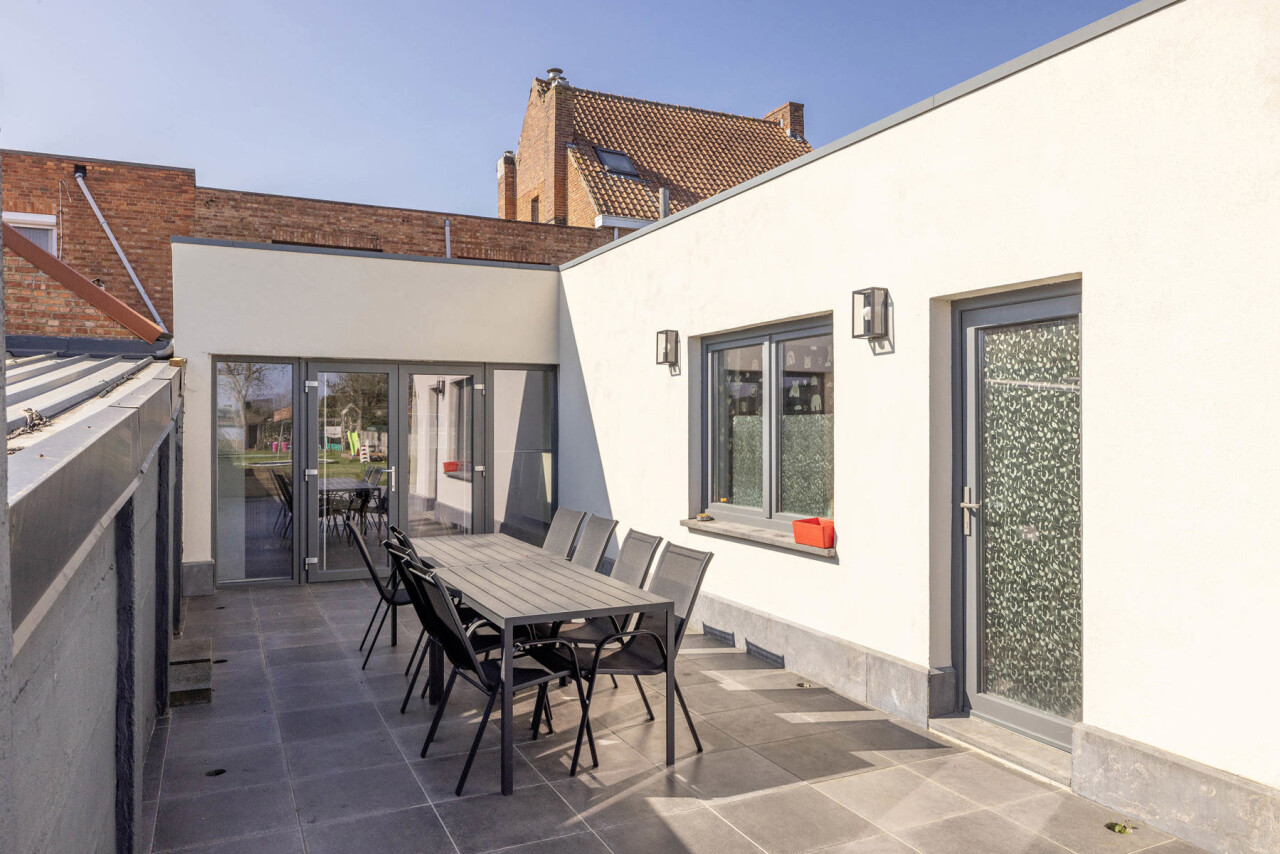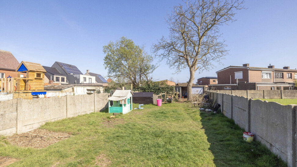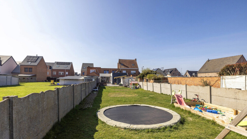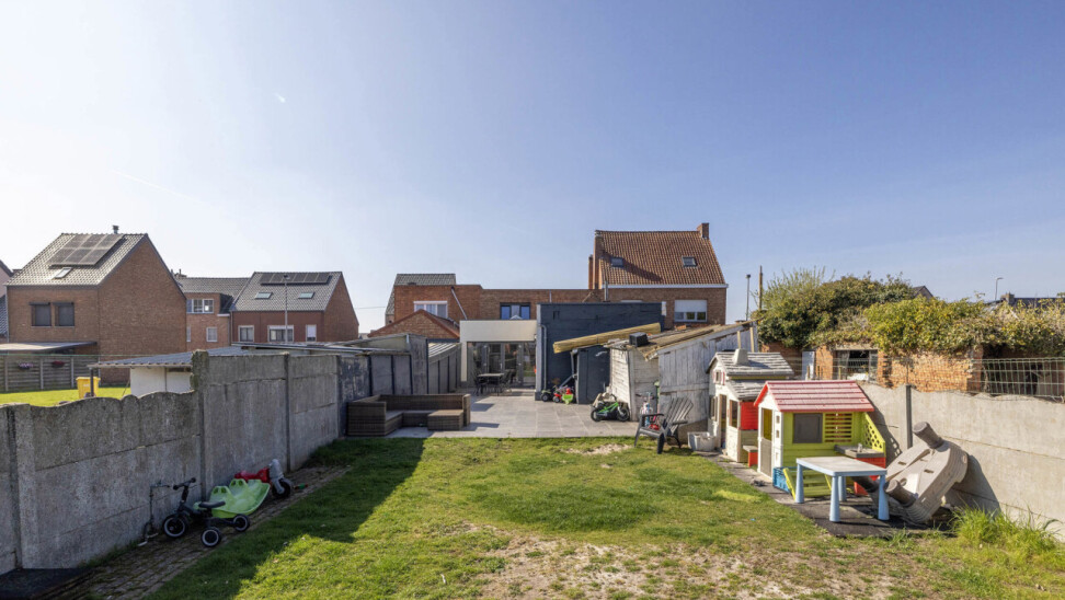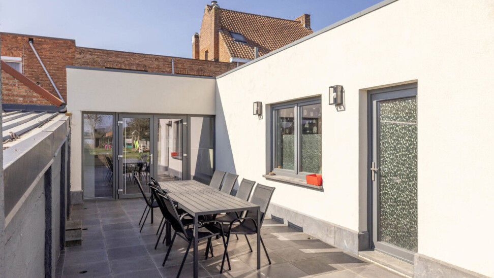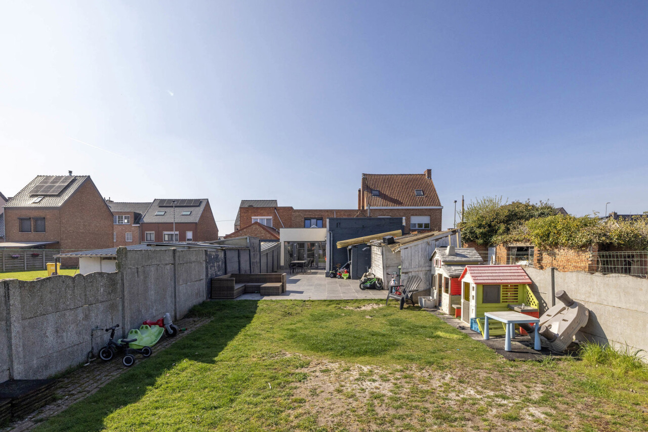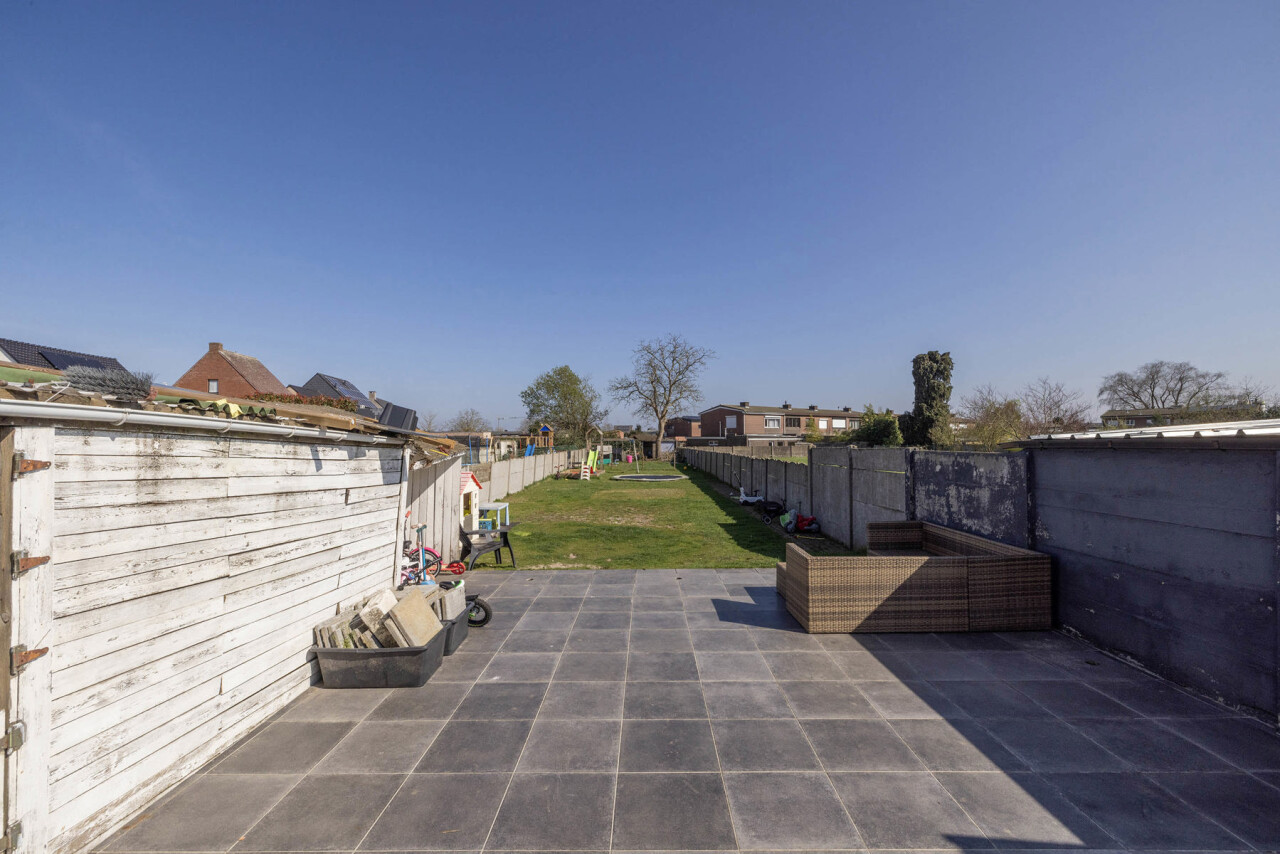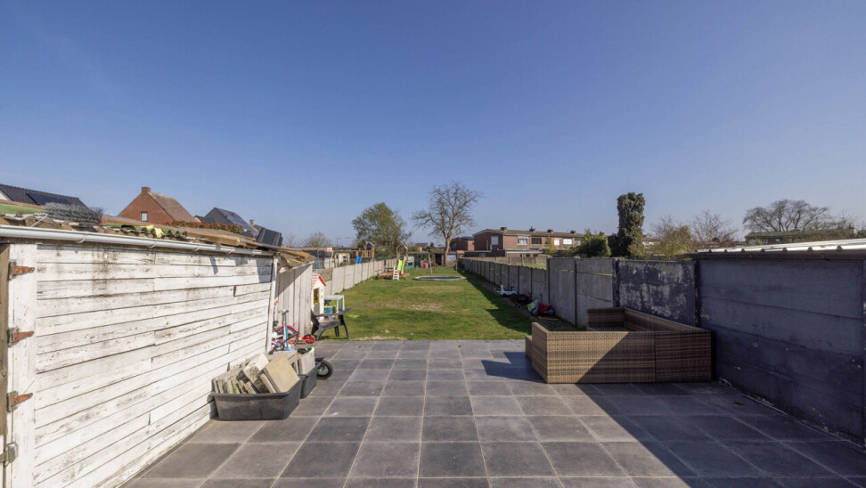 Achteraan kan je op het grote zonnige terras genieten van de mooie diepe tuin met tuinberging.