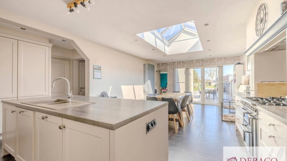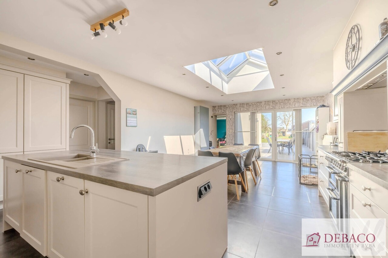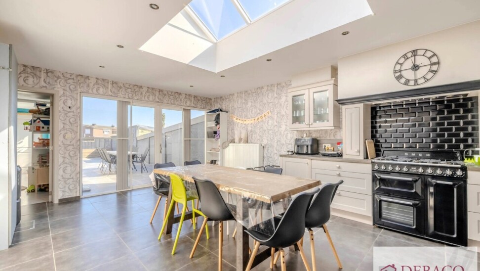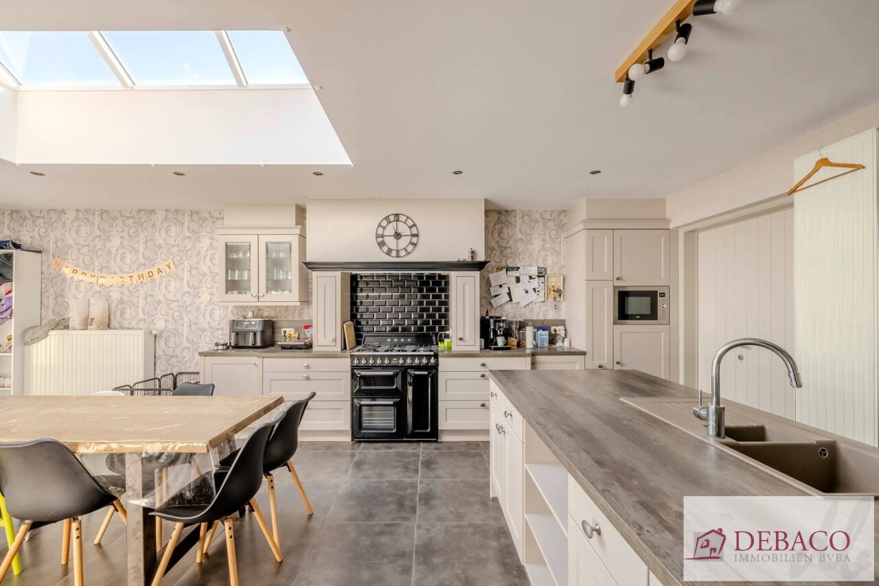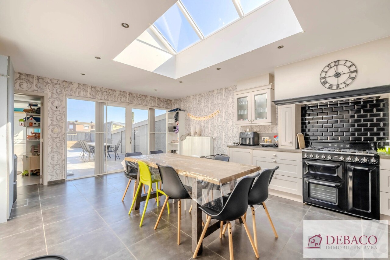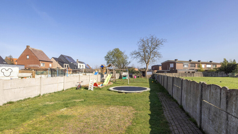Achteraan kan je op het grote zonnige terras genieten van de mooie diepe tuin met tuinberging.