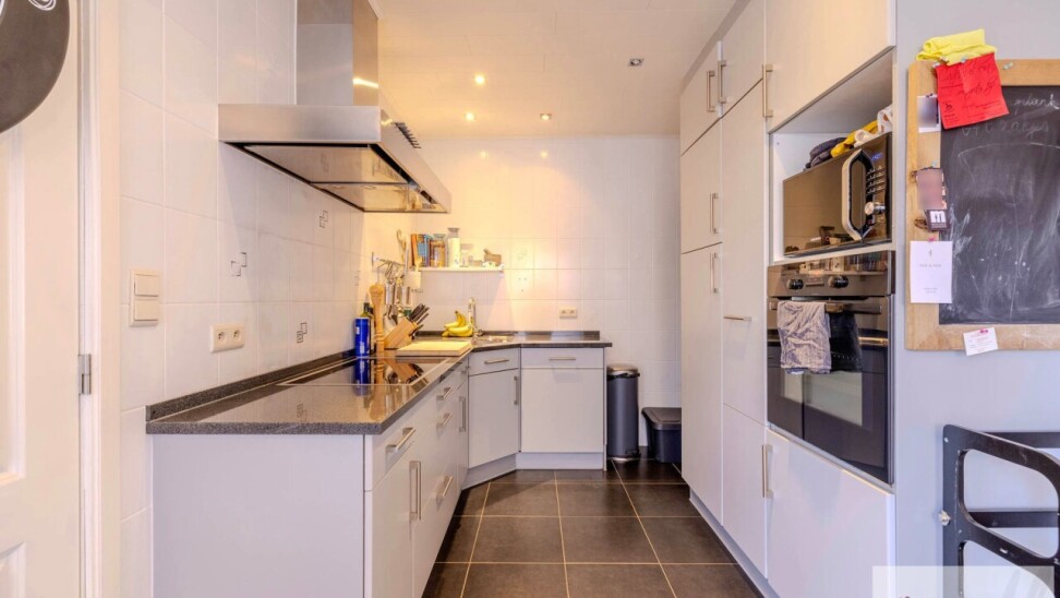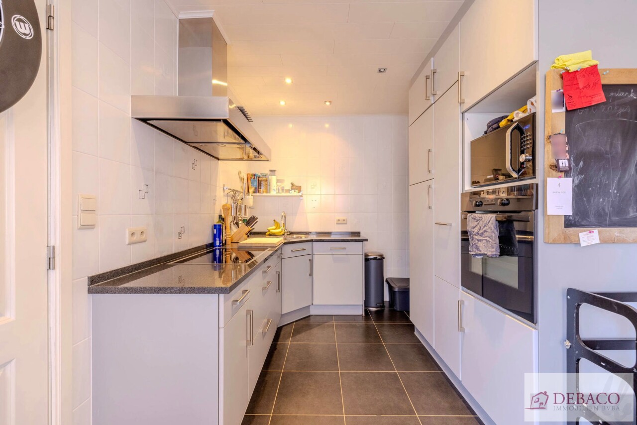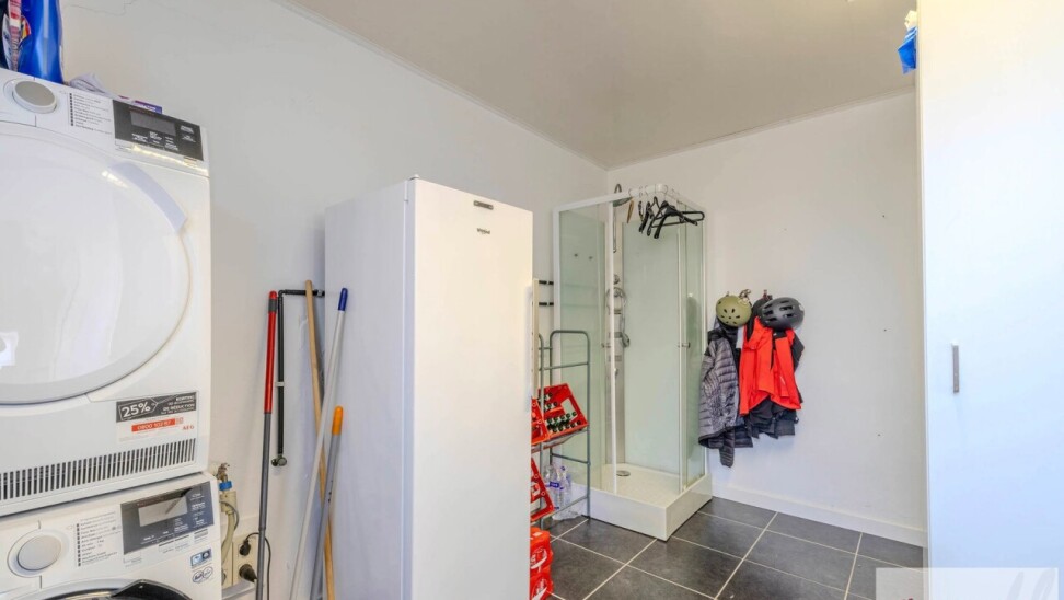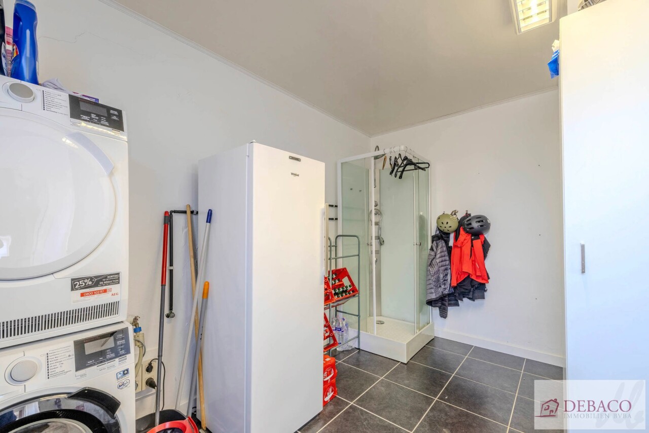 Binnenin wordt u verwelkomd in de inkomhal die uitgeeft op een mooie en aangename leefruimte. Vanuit de leefruimte krijgt u toegang tot de volledig geïnstalleerde keuken. Naast de keuken is er ook nog een zeer praktische bergruimte aanwezig. Verder is er op het gelijkvloers nog een apart gastentoilet, een bureauruimte en een wasplaats met nog een douchecabine aanwezig.