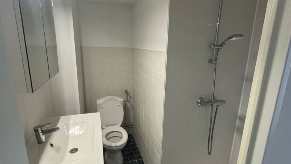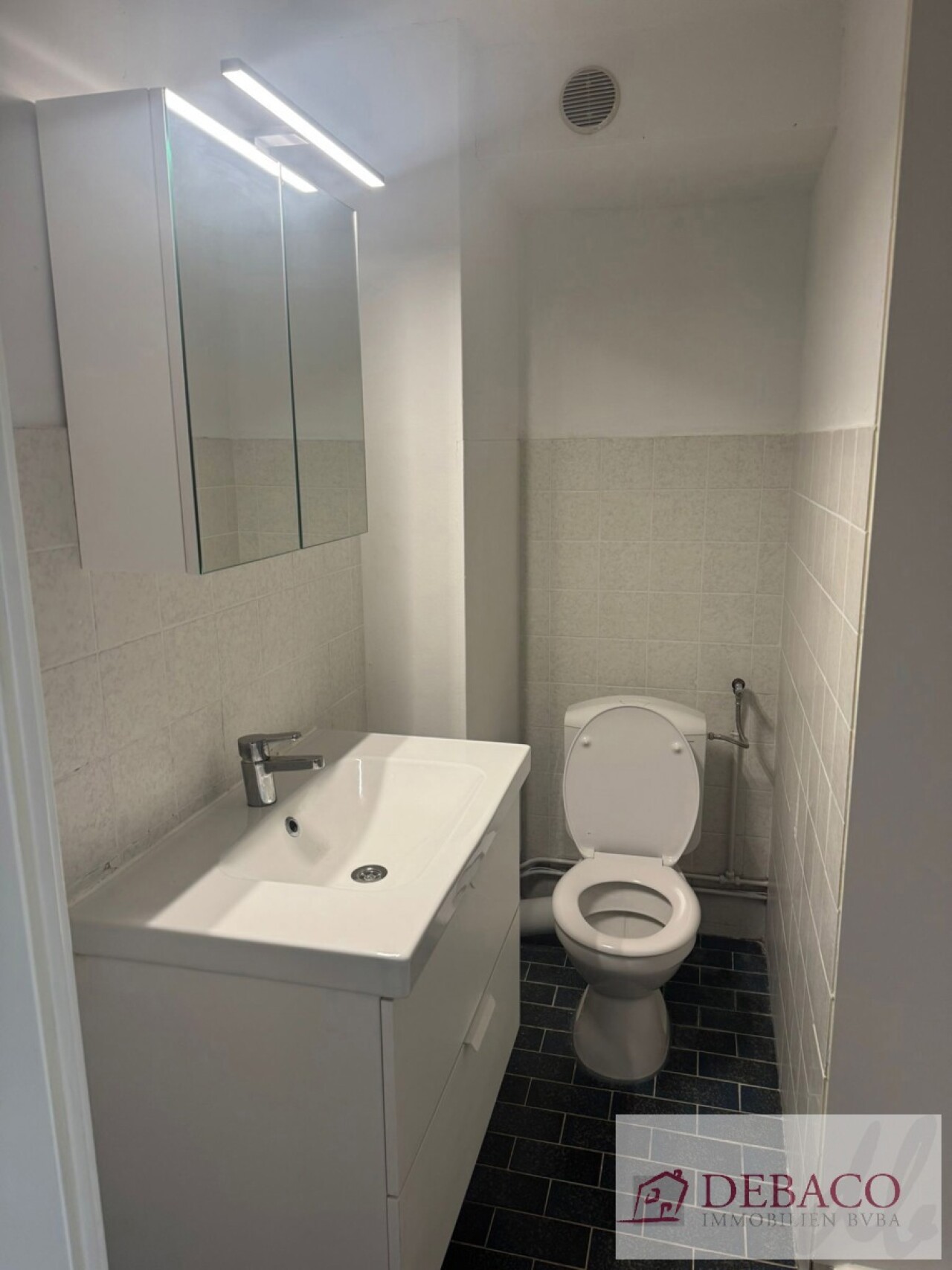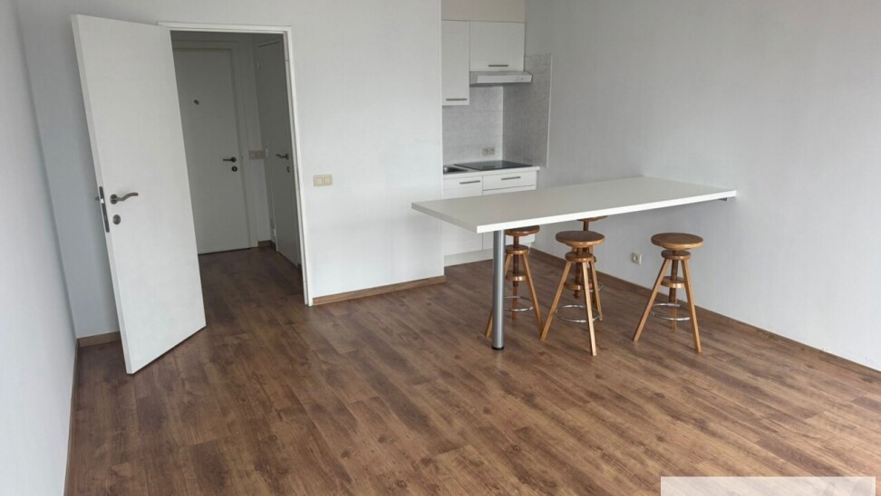 Deze studio bestaat uit inkomhal, woonkamer met open (geïnstalleerde keuken) en aparte badkamer.