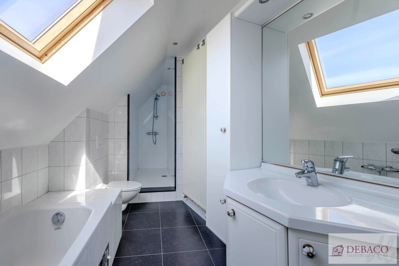 Deze woning bestaat uit een ravissante inkomhal met gastentoilet, woonkamer, volledig ingerichte keuken, badkamer (voorzien van douche, bad, toilet en wastafel), berging/wasplaats, kelder, vier slaapkamers, zolder, voor- en achtertuin, terras en ruime garage.
